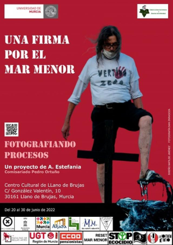 La exposición 'Una firma por el Mar Menor: fotografiando procesos' , un proyecto de A.Estefanía y comisariado por Pedro Ortuño, profesor de la Facultad de Bellas Artes de la Universidad de Murcia está compuesta por fotografías tomadas por la ciudadanía con textos de la Cátedra de Derechos Humanos y Derechos de la Naturaleza junto con obras específicas realizadas por estudiantes de IES Sánchez Bautista de LLano de Brujas, IES Monte Miravete de Torreagüera, IES Aljada de Puente Tocinos y CEIPJuan Carlos I de Llano de Brujas .
